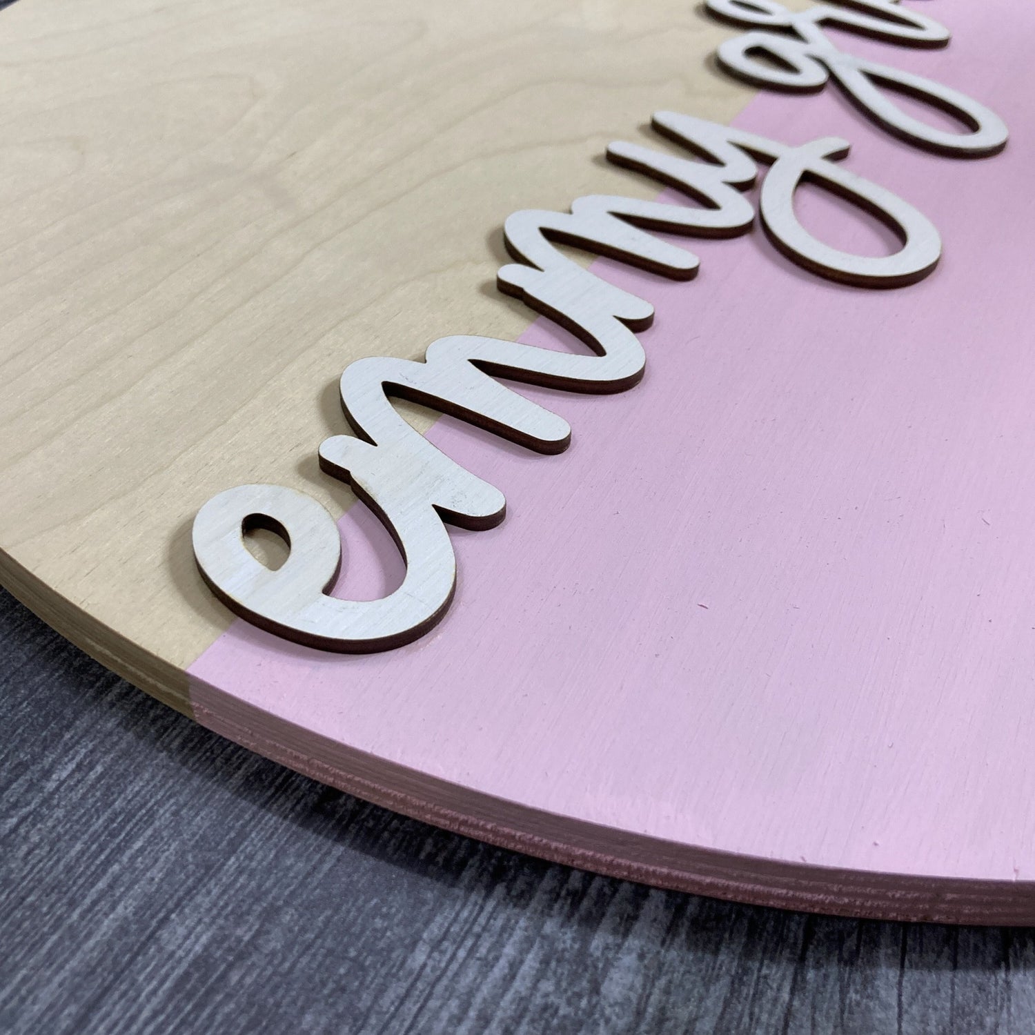 - The top of the sign is unfinished birch wood and the bottom of the sign is painted with your chosen color